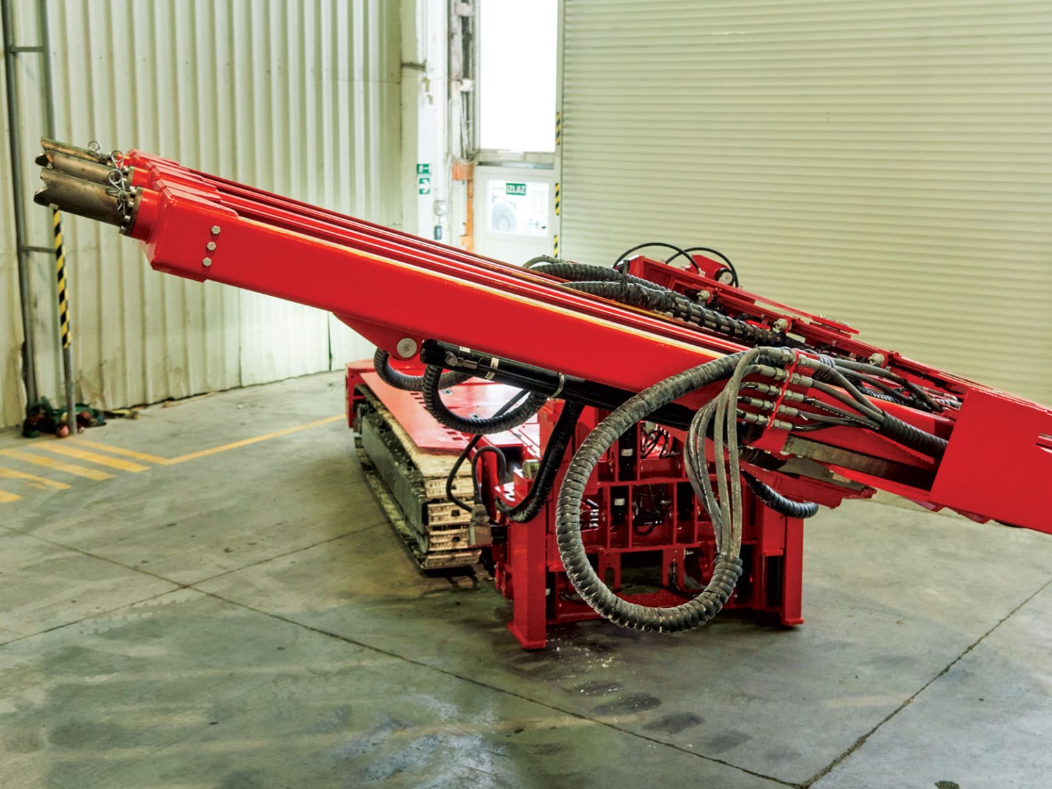 La plataforma de Perforación NRE está diseñada para trabajar en anchos de perforación de 0,9 a 1,7 m y puede trabajar en inclinaciones de vetas hasta 22°. La plataforma de Perforación NRE tiene una configuración de 3 perforadoras, lo que permite perforar 3 pozos frontales simultáneamente. Su control remoto autónomo y ligero permite que el operador permanezca a una distancia de operación segura durante el proceso de producción.